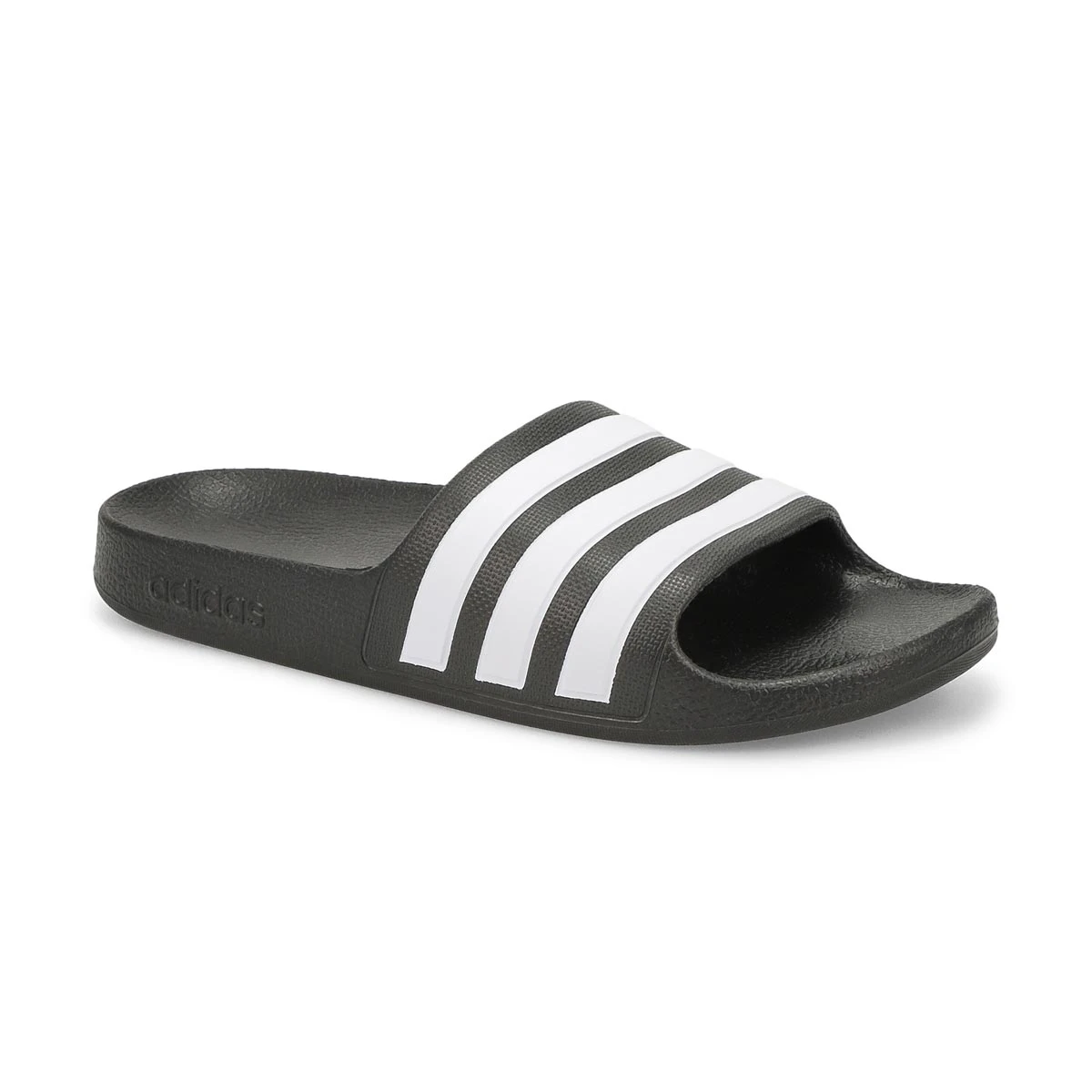 From the beach to the street. These slip-on slides have a pillow-like cushioned footbed for optimal comfort. The bandage-style upper offers a lightweight feel. Features a synthetic upper. Slip-on construction in a contoured Cloudfoam Plus footbed. Lightweight EVA outsole. You will want to make the Adilette Aqua white/ black sport slide from Adidas part of your childs must-have list for their wardrobe this season!